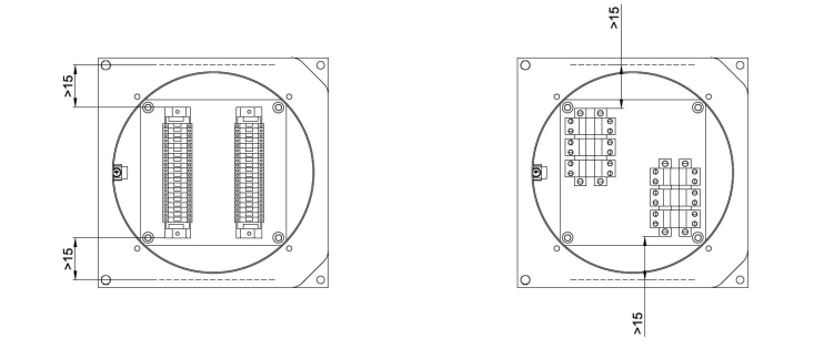 終端的內部布局可以按照不同的配置進行,根據客戶的特殊要求,但始終在合格證的范圍內,終端可以與標準的不同位置安裝。