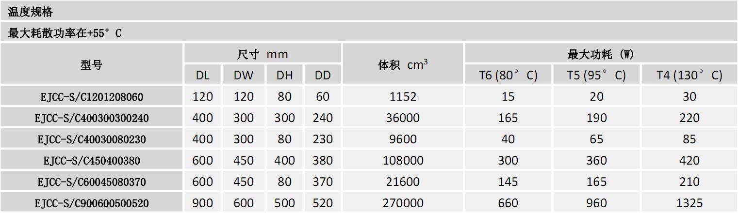 接線盒和控制站也可以制造到中等大小。這假定任何給定尺寸不大于最大外殼的各自尺寸,或小于最小外殼的各自尺寸。適用于中等大小的接線盒的額定功率是下一個最小外殼的額定功率。終端和部件可按指定的組合使用,但需計算最大耗散功率和認證條件。每個外殼的最大耗散功率都在上面詳述。